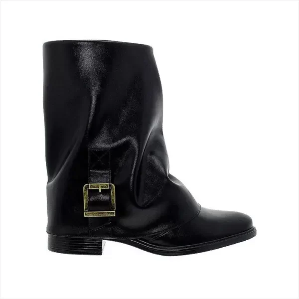 Diferencial: posee caña media con capa superpuesta y detalle con hebilla metálica, posee discreto detalle dorado en el tacón