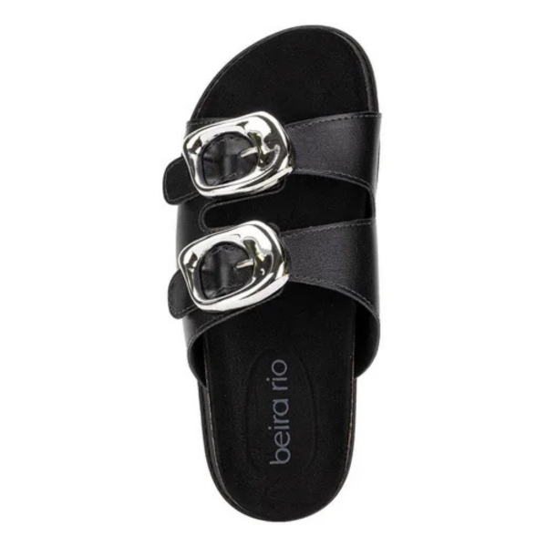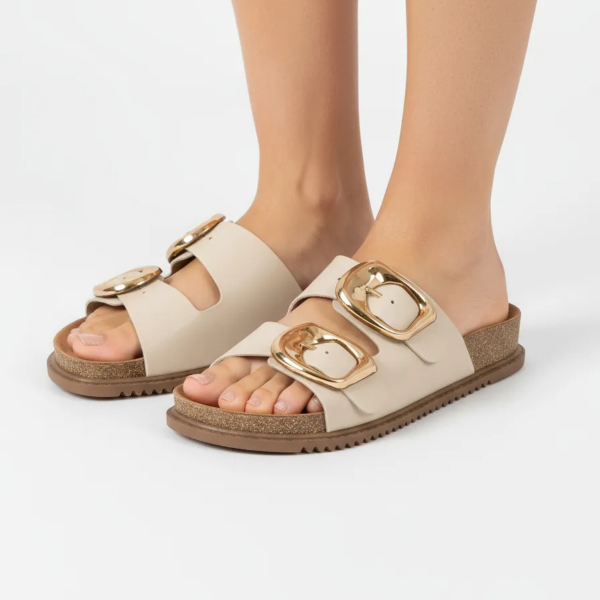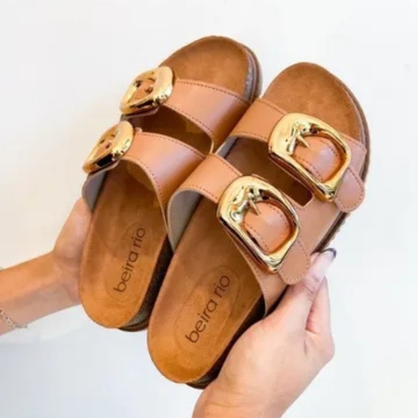 Esta sandalia tipo birken está confeccionada en napa suave, con plantilla acolchada y blanda, diseñada para ofrecer bienestar al caminar y evitar que el pie se deslice, incluso durante largos períodos de uso.