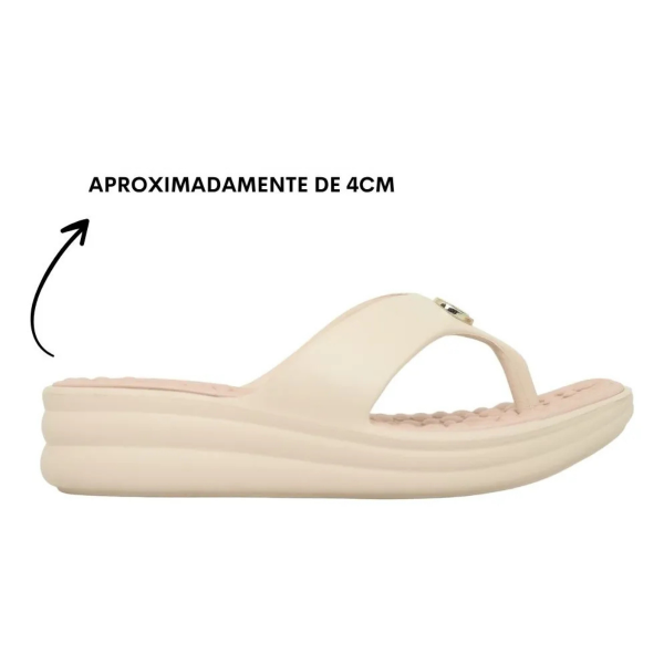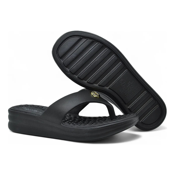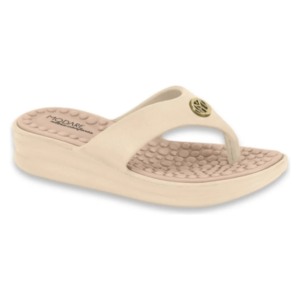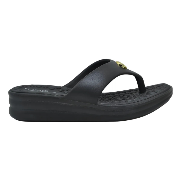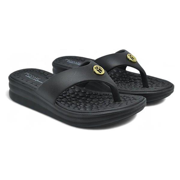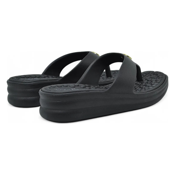 Elaborada en material inyectable, súper ligera y de alta calidad, con tiras anchas que se ajustan suavemente a los pies y detalle de la marca en dorado en la parte superior.