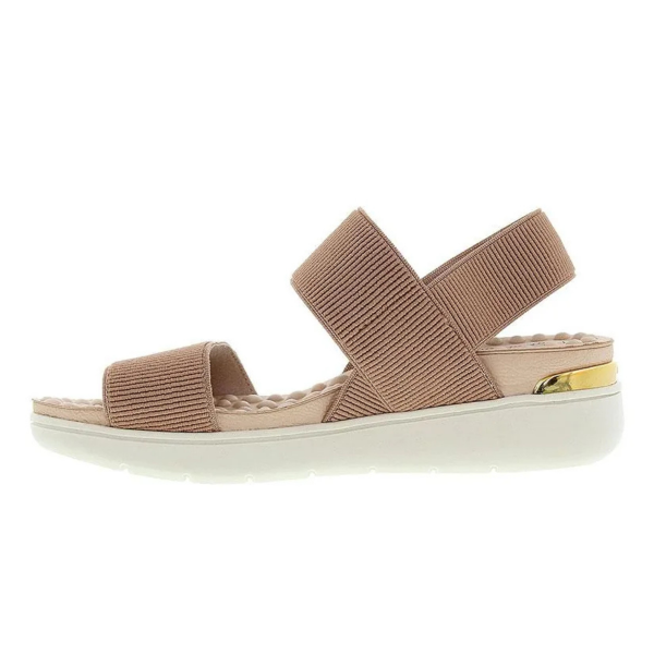 Detalle en dorado en la parte trasera de la sandalia, esta es la opción perfecta para quienes buscan confort y elegancia
