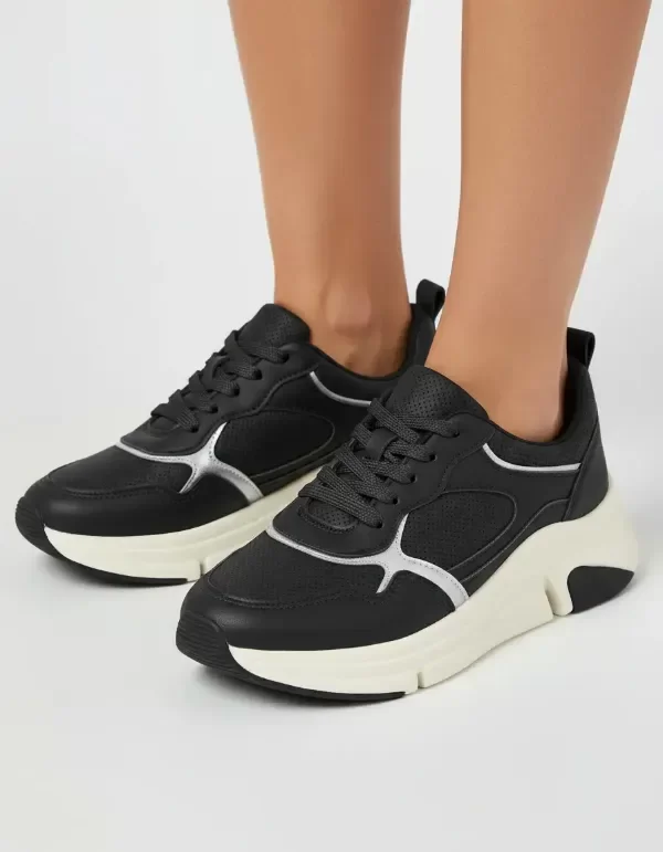 El modelo cuenta con cordones que permiten un ajuste personalizado, garantizando que los tenis se adapten perfectamente a sus pies.